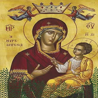 И родивши Га без бола, као што Га је и зачела без греха, од Духа Светога, а не од човека, она Га сама пови у ланене пелене, поклони Му се као Богу и положи Га у јасле.