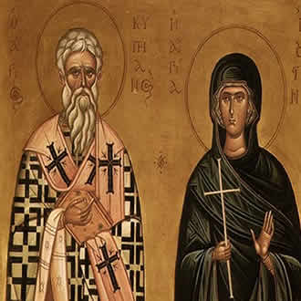 Свети свештеномученик Кипријан и Јустина девица Кипријан — досељен из Картагене у Антиохију, где живљаше и Јустина са својим родитељима, Едесијем и Клеодонијом.
